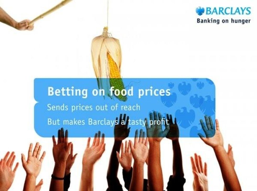 And Barclays, which won the jury prize chosen by members of Greenpeace and the Berne Declaration, was singled out for its role in profiting from commodity trading and "effectively betting on hunger by speculating on food prices."