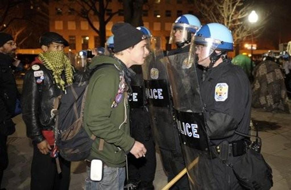 Just before dawn on Saturday morning police, including some dressed in riot gear and accompanied by officers on horseback and others in protective suits, descended in McPherson Square where Occupy protesters have been camped since last year.
