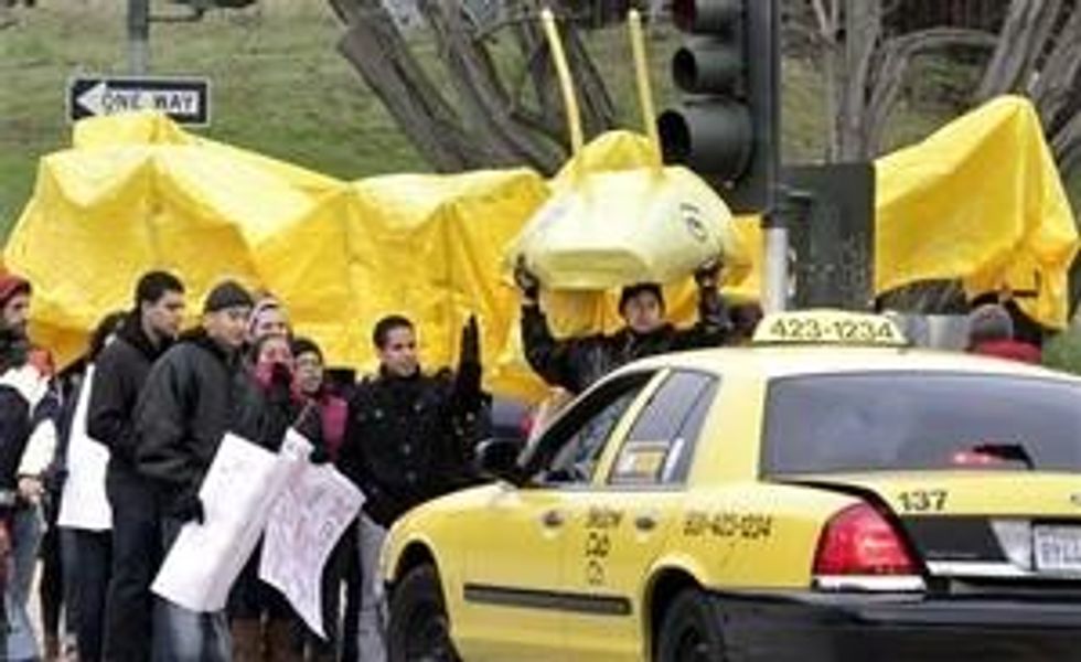 At California State University, Los Angeles, about 300 students marched through campus blowing whistles and chanting, "No cuts, no fees, education should be free," according to the Los Angeles Times. At a rally in front of the campus bookstore, the group held signs that read "Stop Privatization" and "Defend Public Education."