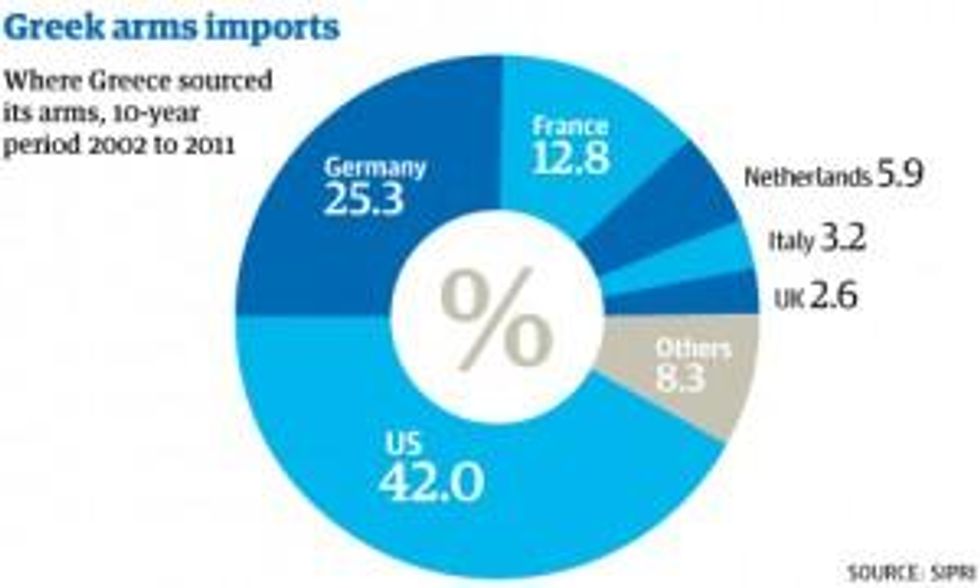 As Germany insists that Greece submit to harsh austerity measures leaving pensions cut, unemployment soaring and the healthcare system slashed, one area it believes needn't be cut is Greece's weapons purchases, provided in great part by and benefiting Germany.