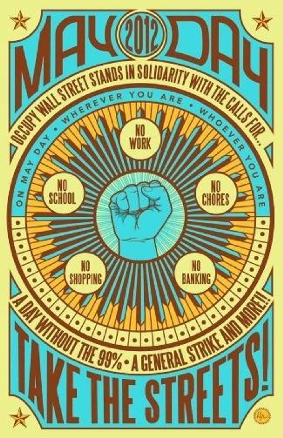 "Let May Day be a day when we re-conceptualize what a general strike can be," Longenecker writes. "The eyes of the world will be on us as we reject the state and capitalism and take the models of direct democracy and mutual aid we practices in hundreds of occupied parks across the country to the streets of the cities and towns in which we live."