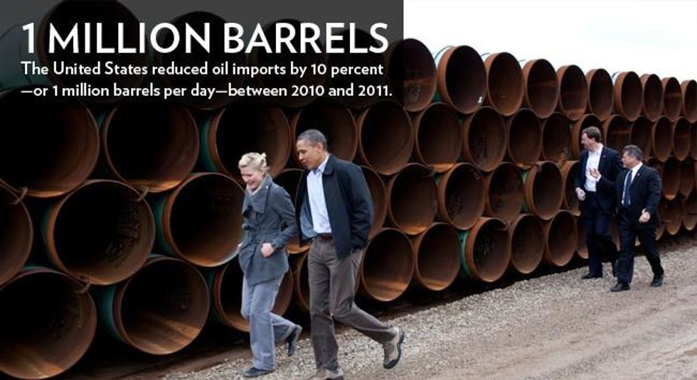 "Gone are the urgent statements warning of melting glaciers and rising sea levels," writes Steven Dennis in Roll Call. "Indeed, the energy and environment page at WhiteHouse.gov now shows a photo of the president walking in front of segments of oil pipeline, and the White House never neglects an opportunity to tout its support for domestic oil and natural gas drilling. In briefings on background, senior administration officials now talk about exporting fracking technology."