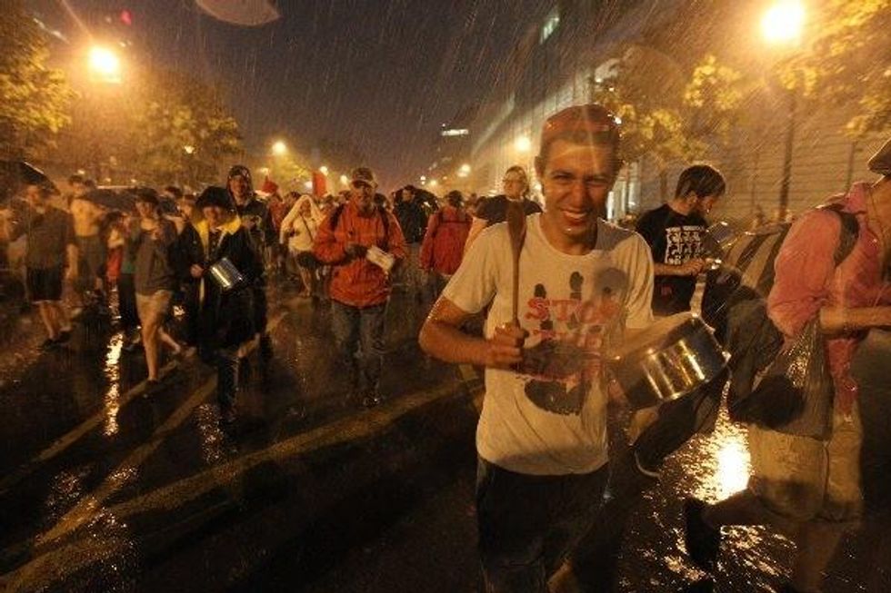 Not lightning, not heavy rain, nor threat of police arrest kept protesters off the streets of Montreal and other Quebec cities on Friday night, as violent rainstorm was met only with another rowdy demonstrations as students and citizens banged on pots and pans to continue their promise to hold nightly events until what they call is a 'draconian law' is overturned.