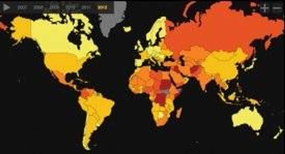 The just released 2012 Global Peace Index (GPI) from the Institute for Economics and Peace shows that the world has become slightly more peaceful over the last two years, with Iceland ranking as the most peaceful country and Somalia ranking as the least peaceful place. The U.S. ranks 88 of 158.