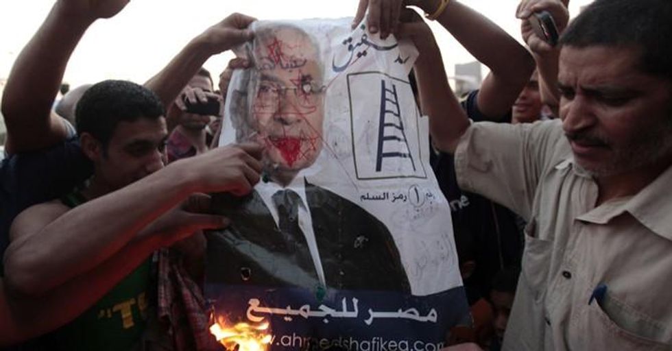 "I am angry," Ahmed Ali, a 44-year-old janitor in Cairo, told Reuters. "Many Egyptians died in the uprising last year and in the end we are being forced to choose between the old corrupt regime we overthrew and a movement that has its own Islamist agenda. I will spoil my ballot."