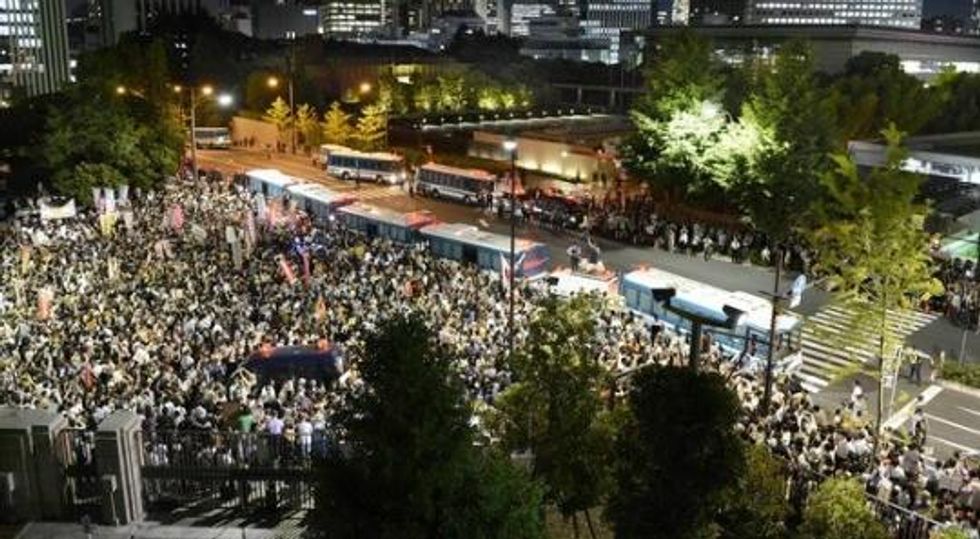 Thousands of protesters gathered outside the Japanese prime minister's residence in Tokyo on June 29 (Photo: Kyodo News, via Associated Press)