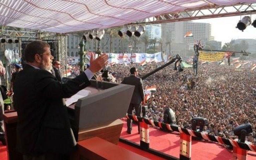 In a speech on Friday Morsi told a crowd of tens of thousands of supporters in Tahrir Square that he will promote a "civilian state" in an address to "the free world, Arabs, Muslims... the Muslims of Egypt, Christians of Egypt."