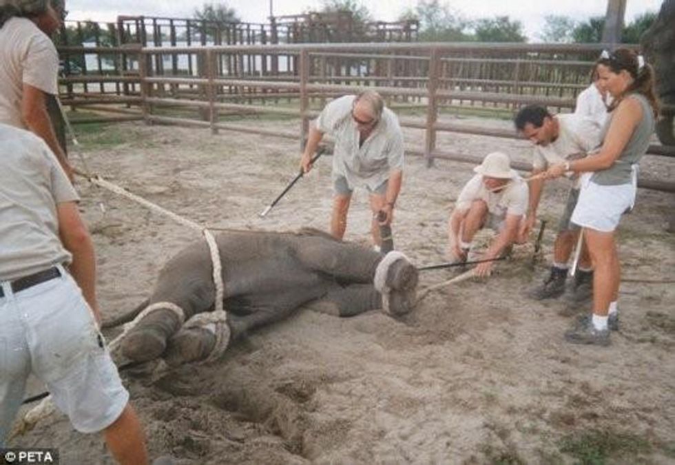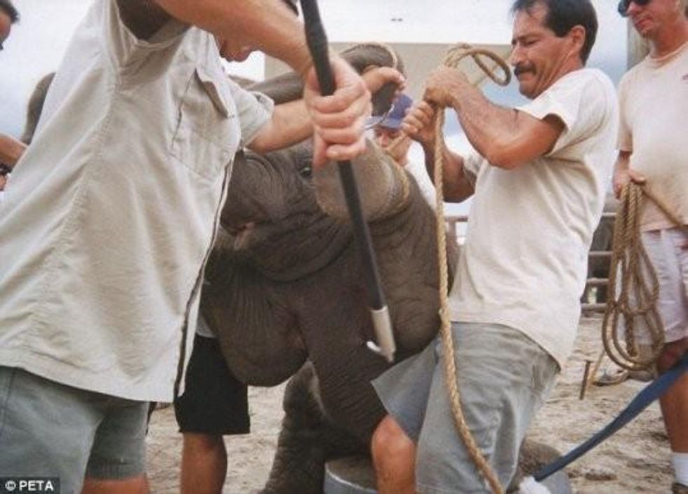 PETA's photos of Ringling Bros staff teaching elephants how to perform tricks: