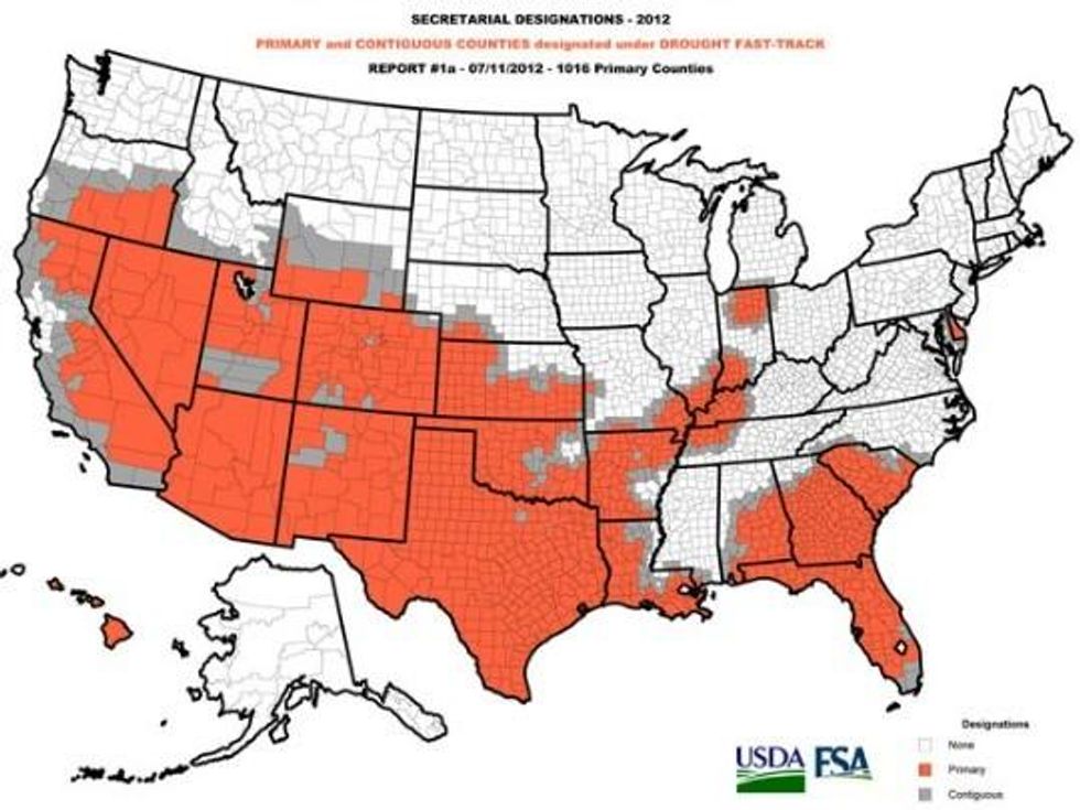The US Department of Agriculture declared a natural disaster on Thursday as a widespread drought stretched over 1,016 counties in 26 states, covering over half the country. The natural disaster is said to be the largest in US history due to its breadth.