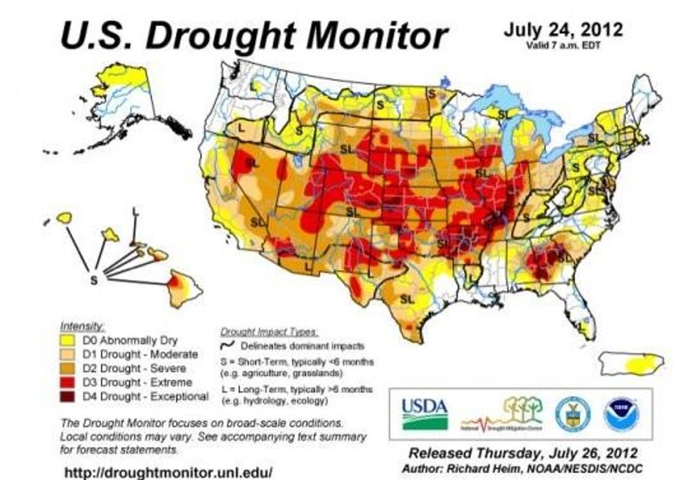 According to Masters, July 2012 now ranks second on a list of months with the greatest percent area in moderate or greater drought since 1895.