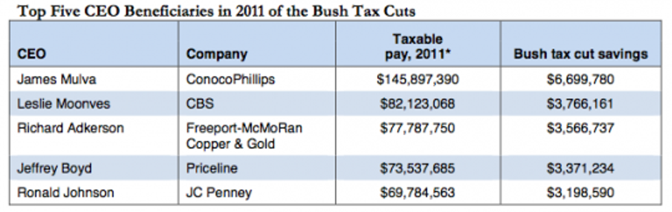 The chart from the report lists some of the CEOs making millions from the Bush tax cuts: