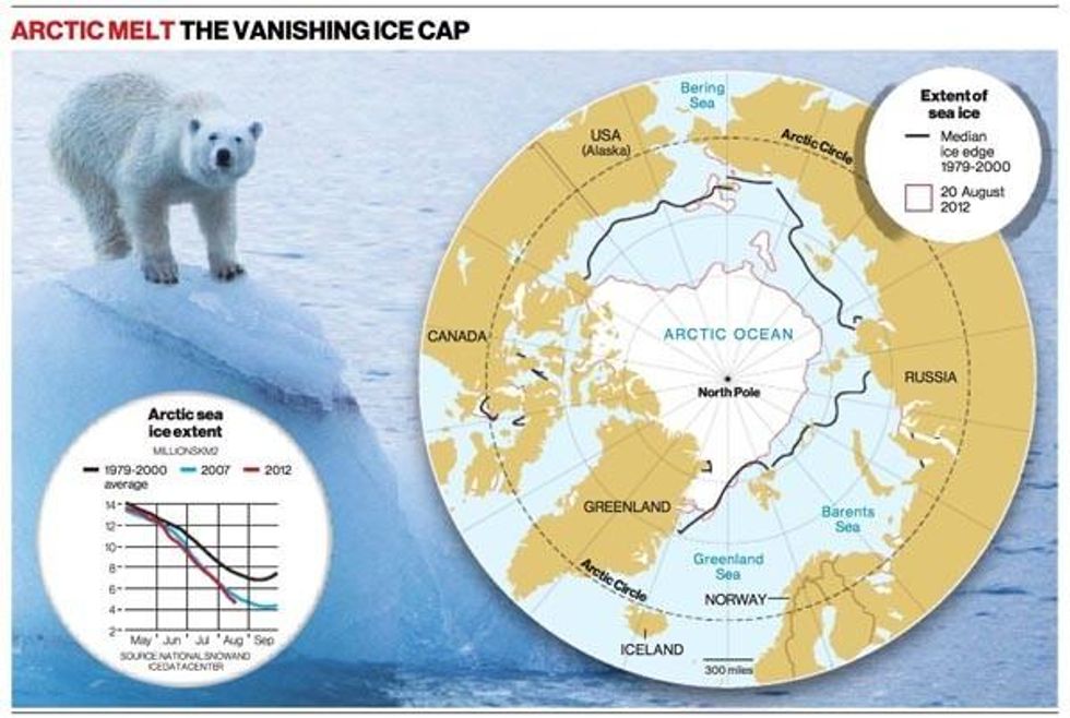The previous record was set in 2007 when the ice cap shrunk to 4.25 million square kilometers (1.64 million square miles), stunning scientists who had not forecast such a drastic melt so soon. Serreze said that the extensive melt was in line with the effects of global warming, with the ice being hit by a double whammy of rising temperatures in the atmosphere and warmer oceans. "The ice now is so thin in the spring just because of the general pattern of warming that large parts of the pack ice just can't survive the summer melt season anymore," he said. [...]