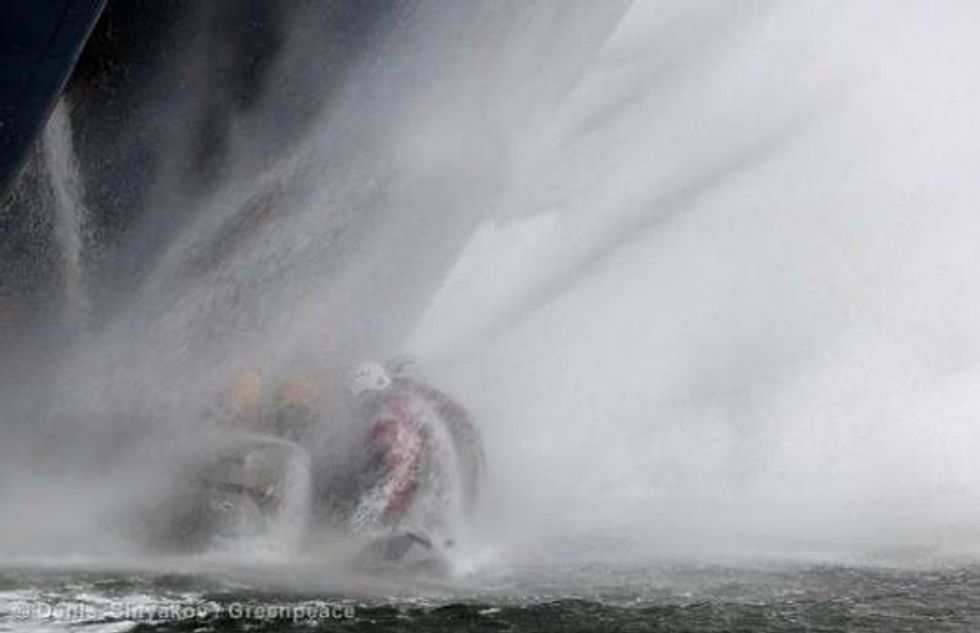 The Russian vessel has attempted to fight off the activists with powerful water cannons. At one point one of the Greenpeace boats was "flipped by hoses," according to the group, sending activists into the water.