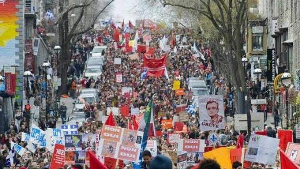 After a year of revolt which became known as the "Maple Spring"--including massive street protests that received global attention--university students across Quebec were celebrating victory on Thursday night following the announcement from newly elected Premier Pauline Marois that the government was canceling the proposed tuition hike that led to the student uprising and nullifying the contentious Bill 78 law which was introduced to curb the powerful protests.