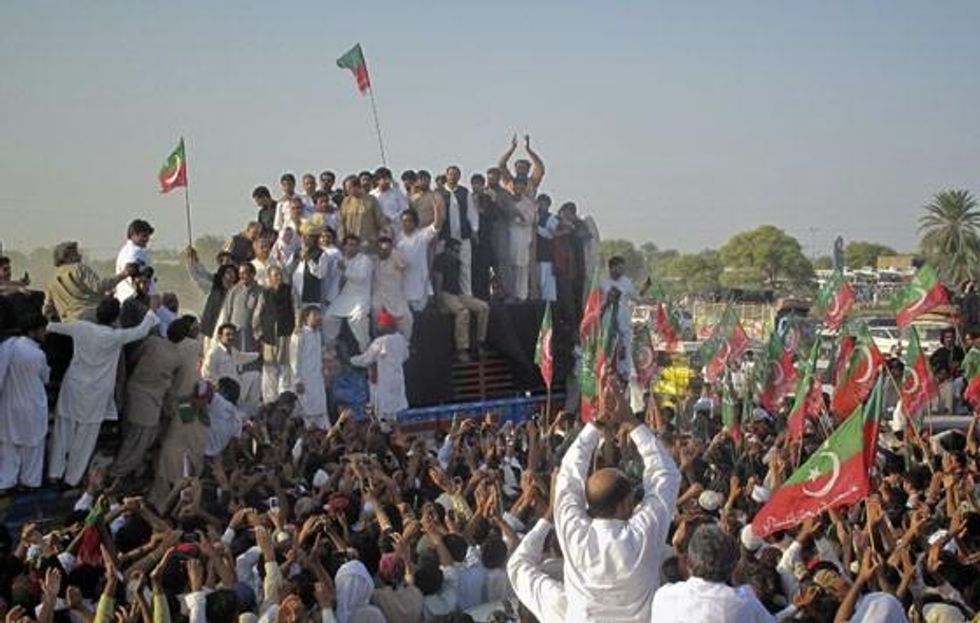 Thousands of anti-drone protesters rallied in Pakistan Sunday, calling for an end to the deadly US strikes that have plagued the country with civilian causalities. As a large caravan and march lead by Pakistani politician Imran Khan headed for South Waziristan, site of countless drone attacks, Pakistan's military blocked roadways and access to the region, forcing the protesters to hold an impromptu rally outside of the tribal belt.