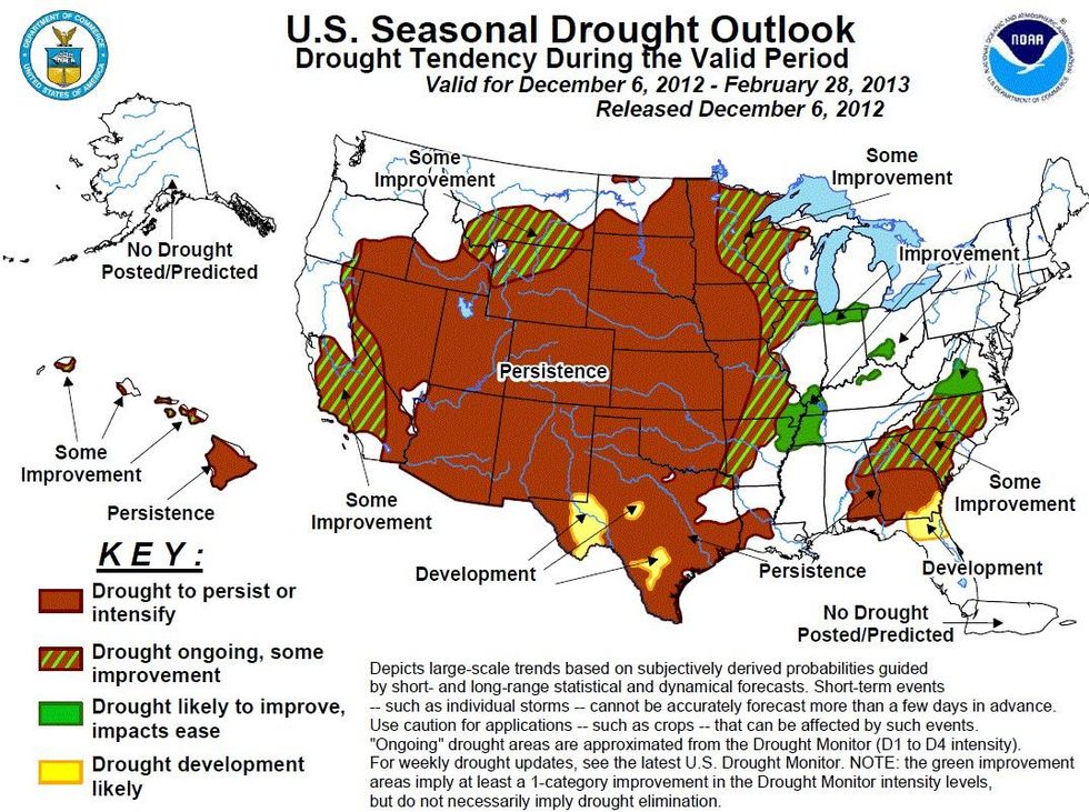 The hope of the drought and its effects ending soon is bleak. The NOAA foresees "drought conditions lingering or intensifying over much of the central and western United States."