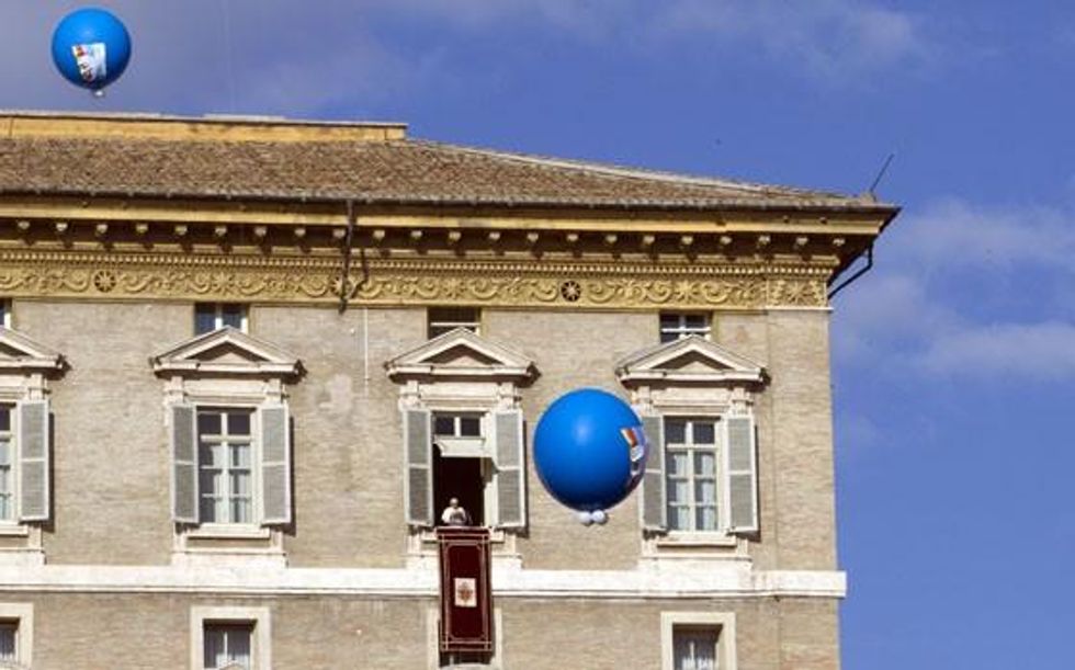The pope said economic models that seek maximum profit and consumption and encourage competition at all costs had failed to look after the basic needs of manyThousands of peace marchers carrying rainbow banners released balloons in cold St Peter's Square as the pope spoke.