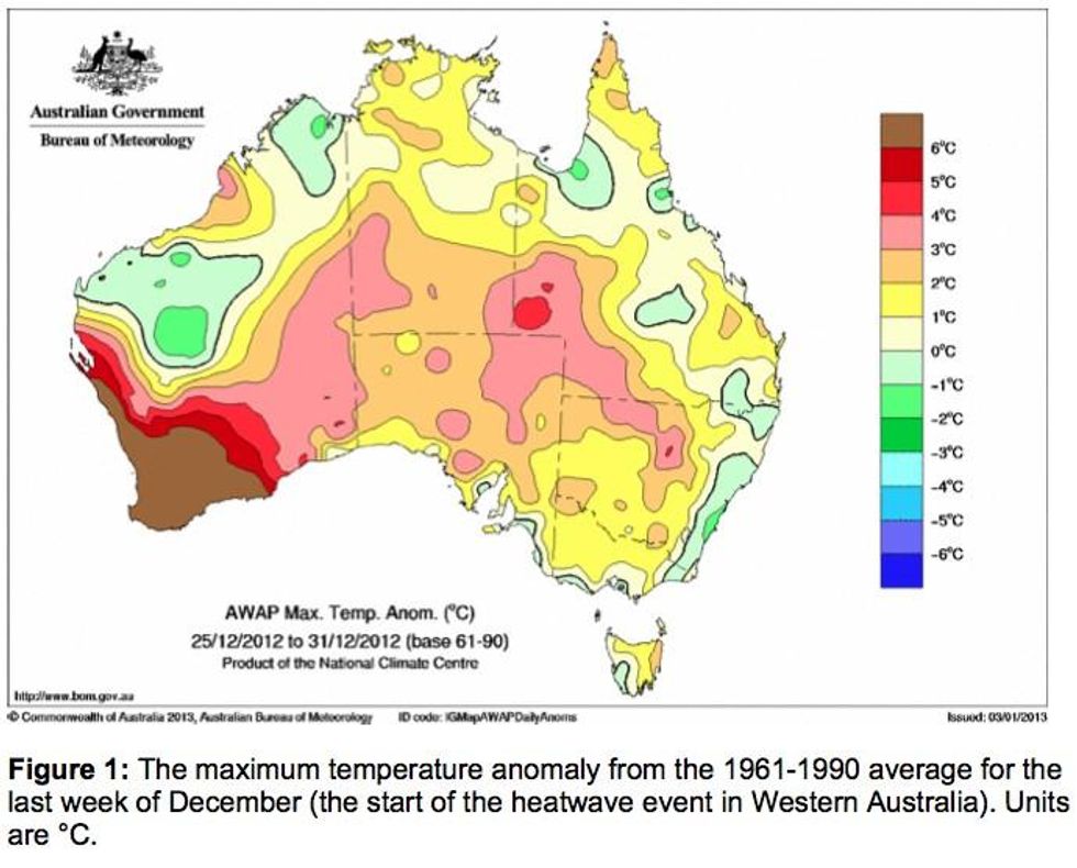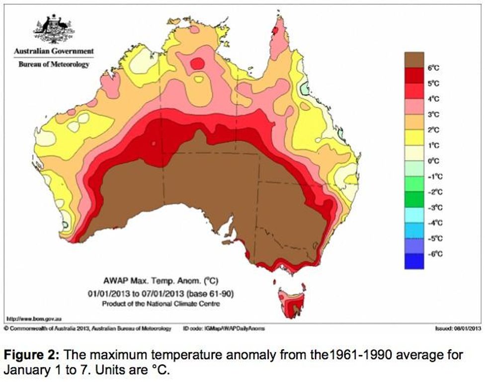 According to the special bulletin (pdf) on the record heatwave from Australia's Bureau of Meteorology: