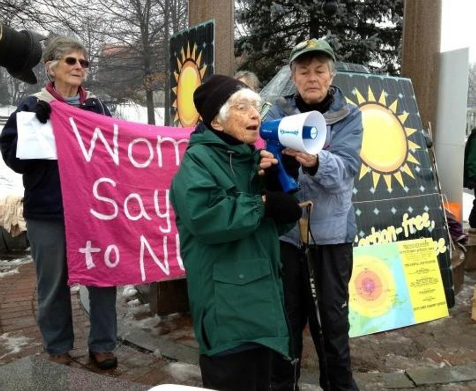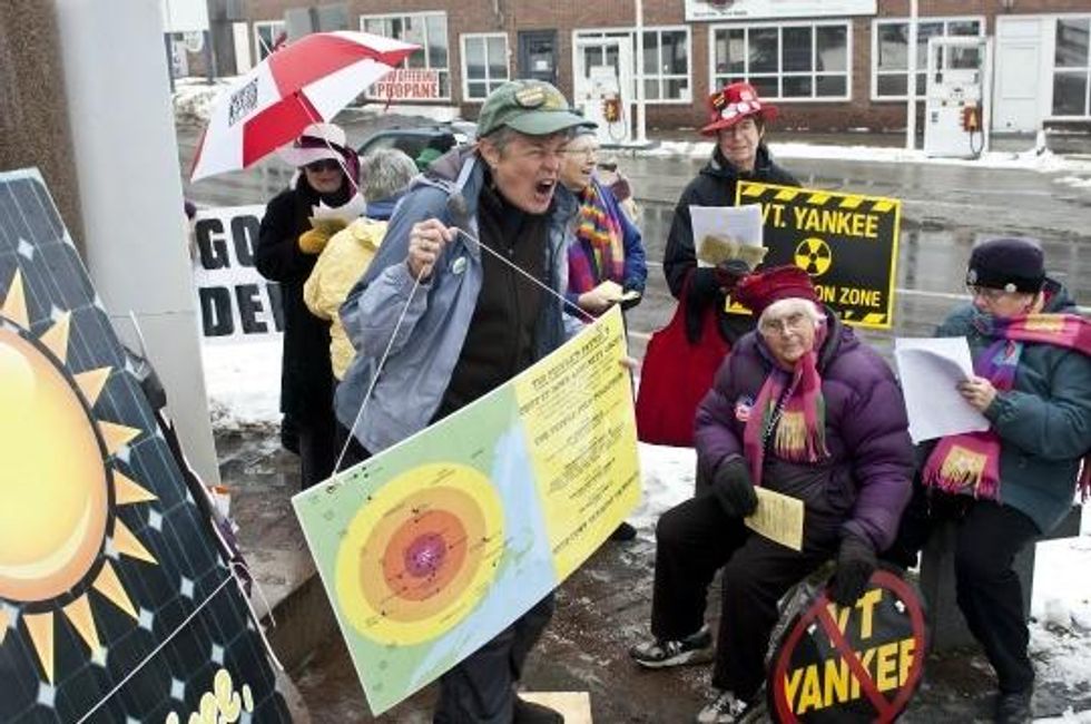 Hattie Nestol, one of the six women convicted for the gate-blocking, told the group on Thursday, "The governor hasn't shut Vermont Yankee down. The legislature hasn't done it. Bernie Sanders hasn't done it. We have to do it. We have to keep going there with our locks and chains until they shut Vermont Yankee down for good."