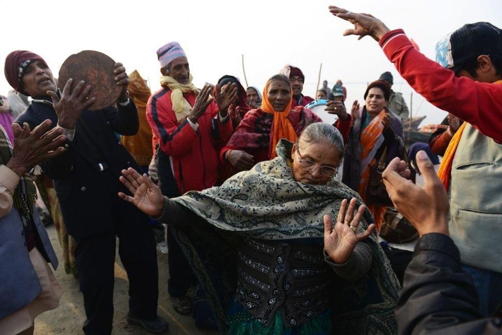 Devotees believe that by entering the mighty rivers they are cleansed of sin and freed from the karmic cycle of rebirth. The bathing takes place in an area known as the Sangam at the confluence of the Ganges and Yamuna rivers "and a third mythical waterway called the Saraswati."