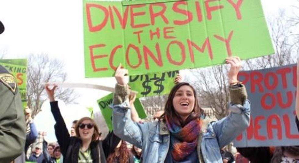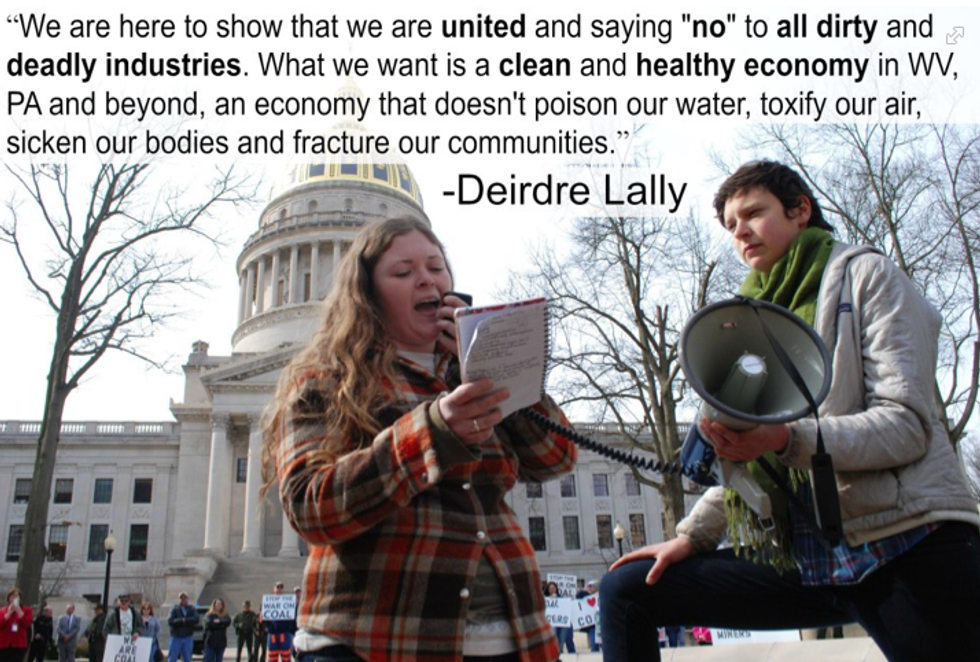 We are here to show that we are united and saying 'no' to all dirty and deadly industries. What we want is a clean and healthy economy in West Virginia, Pennsylvania and beyond, an economy that doesn't poison our water, toxify our air, sicken our bodies and fracture our communities... The West Virginia governor, just like our governor in Pennsylvania, has blood on his hands. They have followed the orders of polluting industries. They have acted as traitors to the people who elected them.