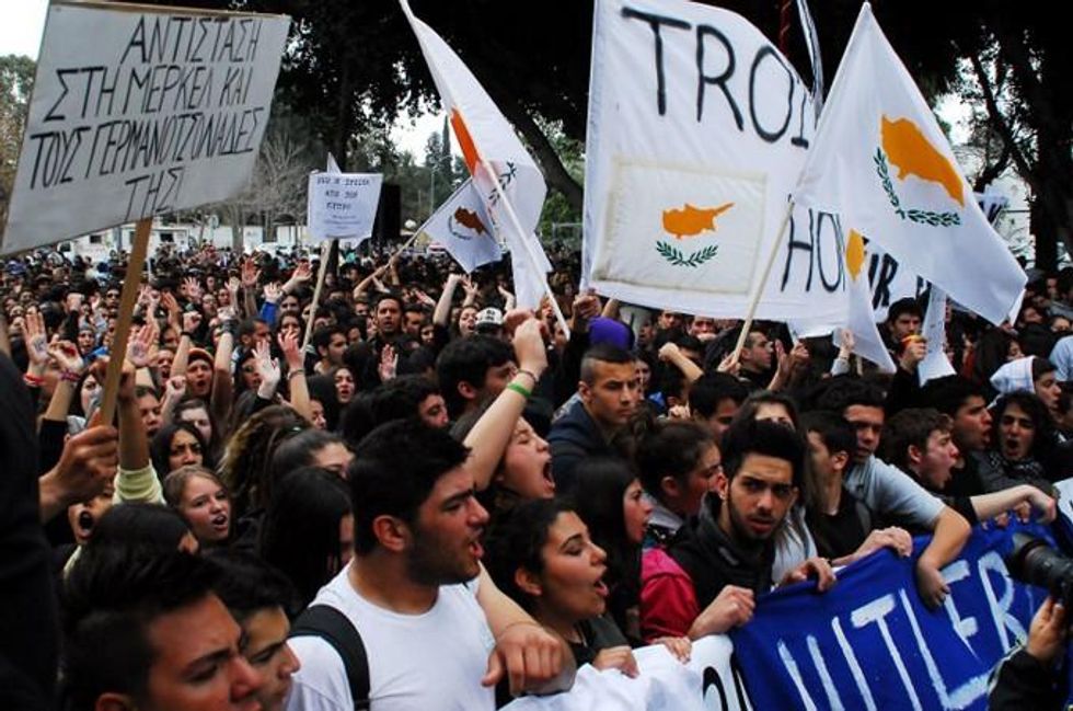 Large crowds--mostly students and young people--marched in the nation's capital of Nicosia, denouncing the deal which critics and experts say will cause 'years of suffering' for ordinary Cypriots.