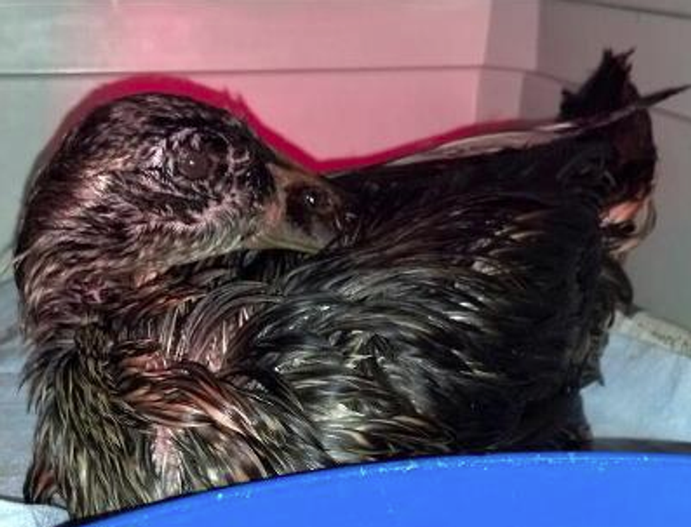Local animal wildlife rehabilitation clinic, the HAWK center, posted images on their facebook page of recovered birds coated with the thick, black tar.