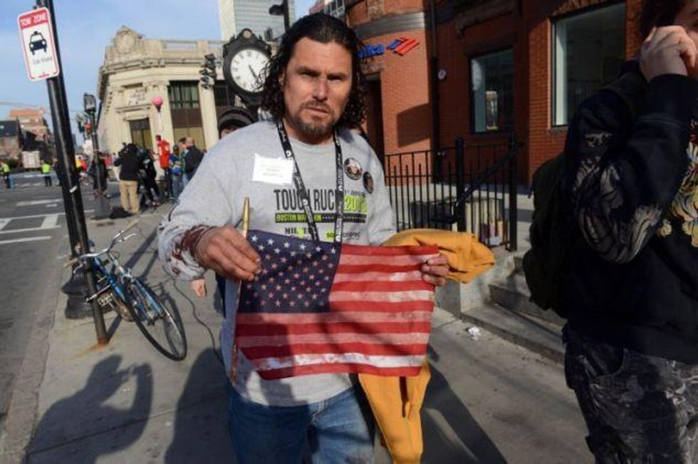 The 52-year-old Costa Rican immigrant is visible in a series of photos and videos taken immediately after the twin blasts near the race finish line. The distinctive, long-haired figure sprints across the street to tear away fencing and scaffolding to get to victims. Reports said he used his own clothes and towels to try to staunch bleeding.