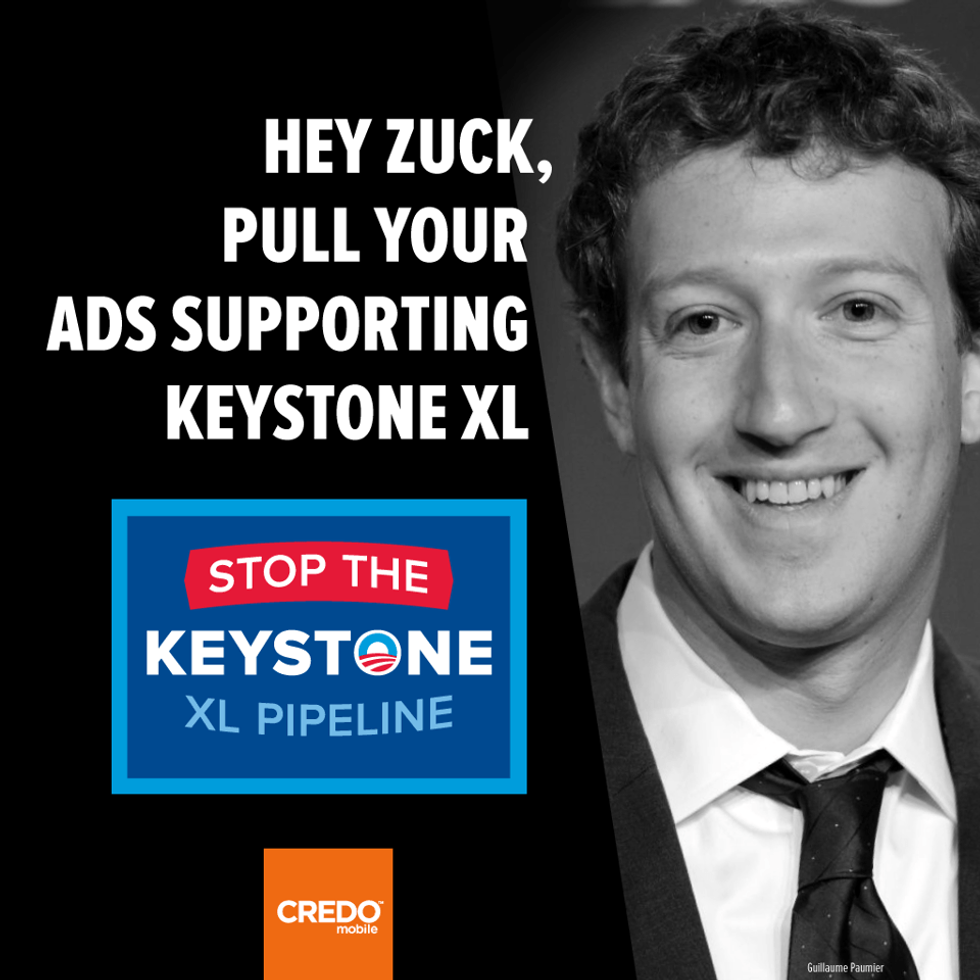 CREDO created a Facebook graphic that has been shared 6,098 times so far which says: "Hey Zuck, pull your ads supporting Keystone XL."