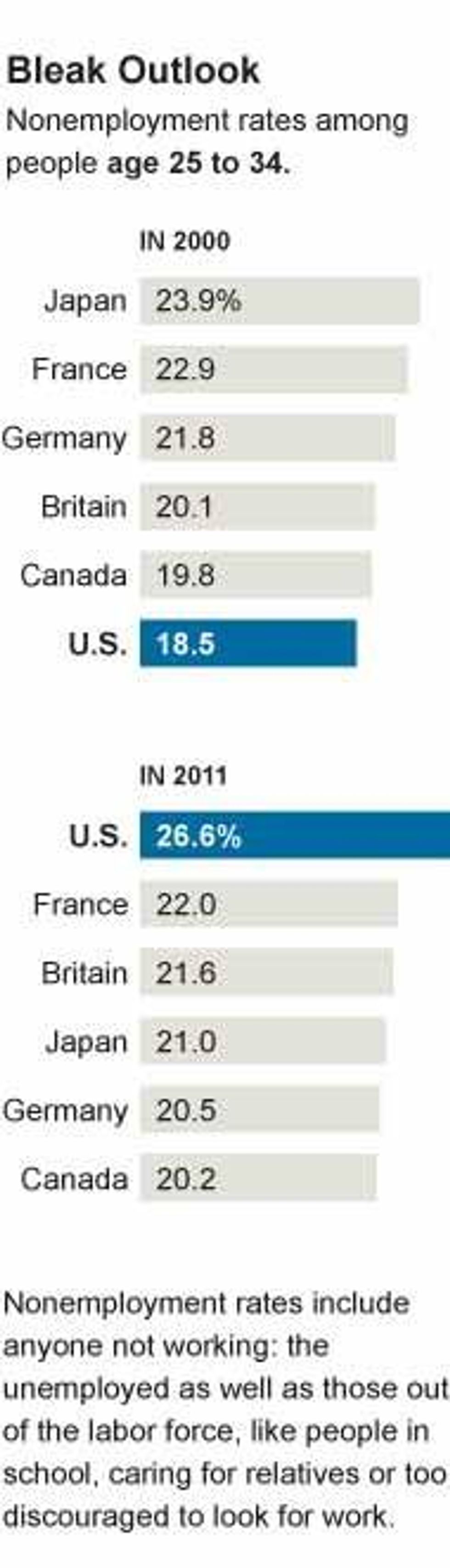 NYT: "The US has gone from having the highest share of employed 25- to 34-year-olds among large, wealthy economies to having among the lowest."