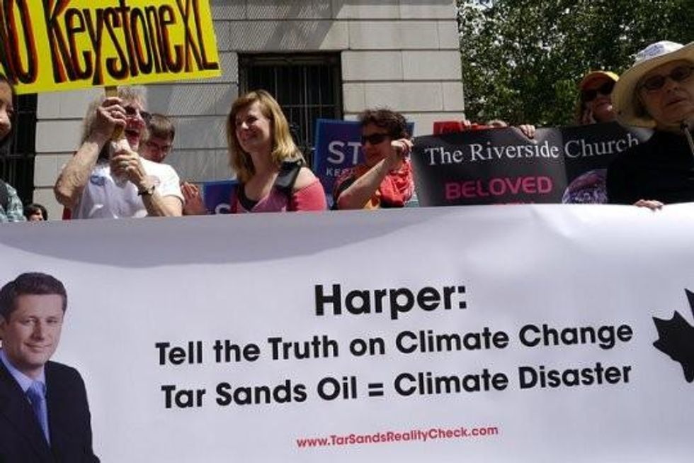 "Harper: Tell the truth on climate change. Tar Sands = Climate Disaster," was the message the activists brought with a large banner.