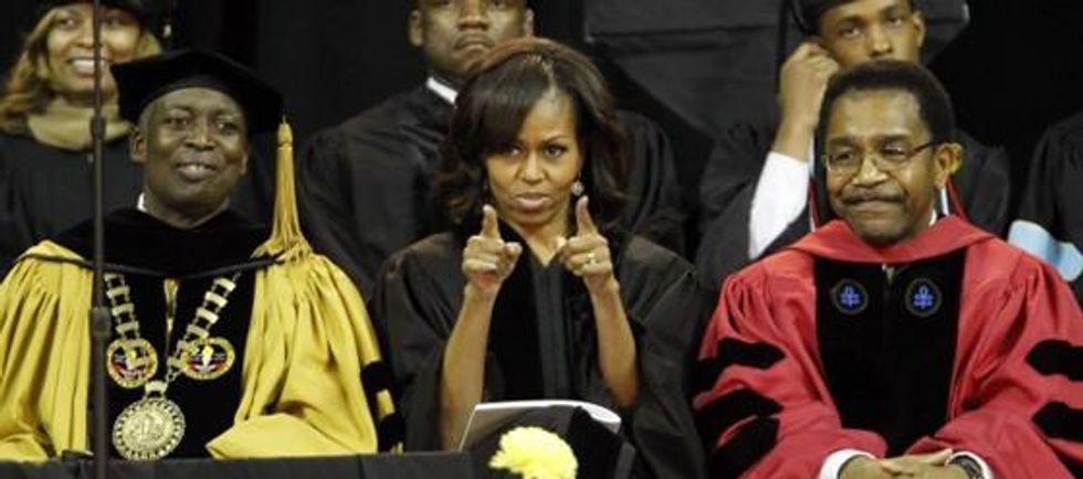 President Obama was the commencement speaker this year at Morehouse College in Atlanta and Michelle Obama at Bowie State University in Maryland--both historically black colleges and universities.