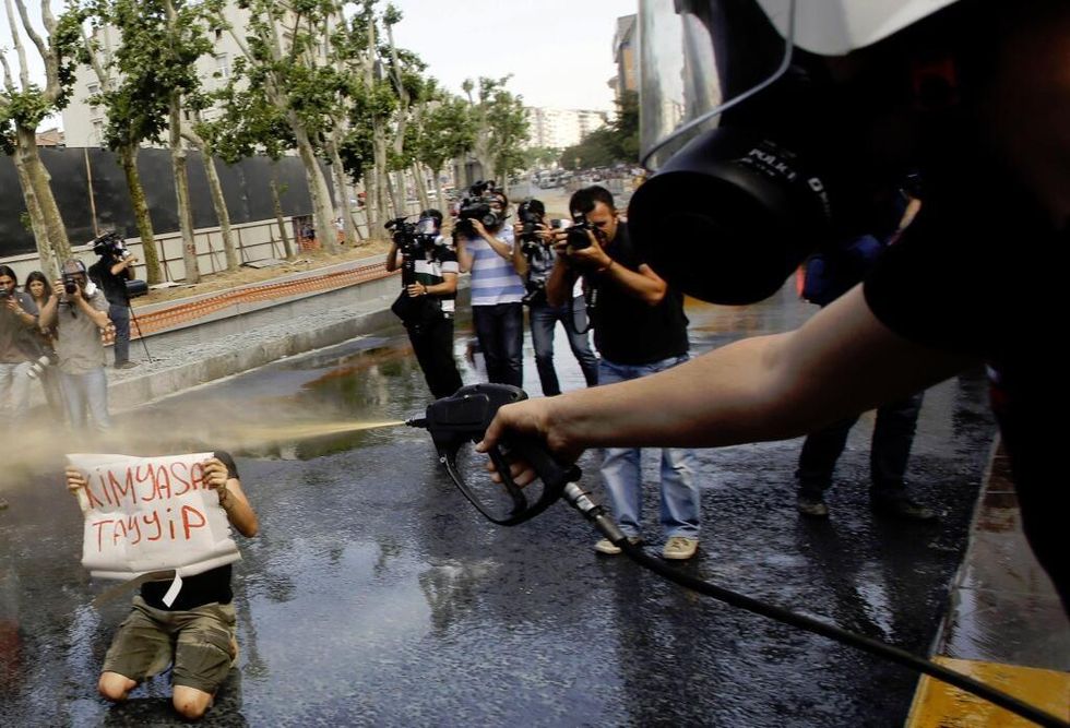 "Clouds of tear gas rose around the area in Taksim Square that has long been a venue for political protest," Reuters reports.