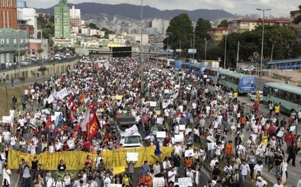 Though the 'back-breaking piece of straw,' as Nation editor Dave Zirin writes, that sparked the protests was a spike in transportation fares, the protests are largely against the billions of public funds being invested in tourist infrastructure and events such as the upcoming 2014 World Cup and 2016 Olympics while public services and the population continue to suffer.