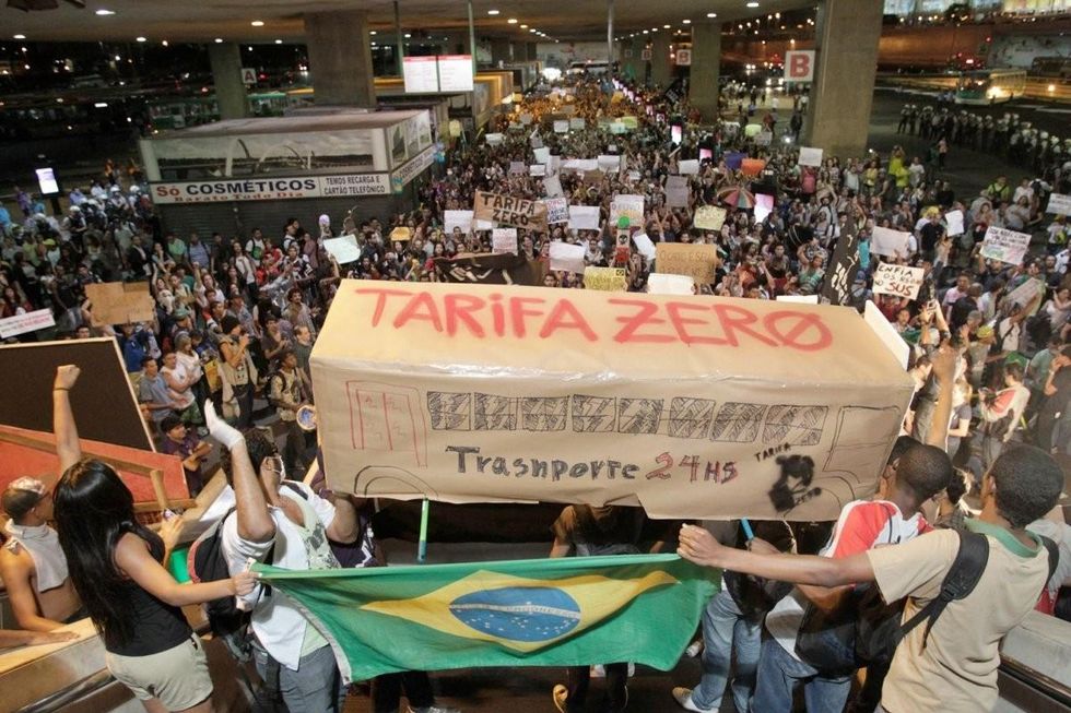 Though initiated by unrest over the fare increase, the protests have spiraled into a larger demonstration against political corruption and the prioritization of tourism and international events such as the upcoming World Cup and Olympic games over basic civic commodities.