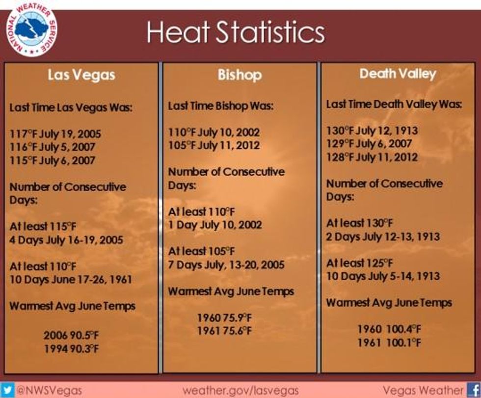 Las Vegas, currently under an excessive heat warning, could see temperatures reach 118 degrees this weekend, and on Friday at an outdoor concert in the city, 115 degree temperatures caused 170 people to be treated for heat-related injuries, with 34 more sent to local hospitals, Reuters reports.