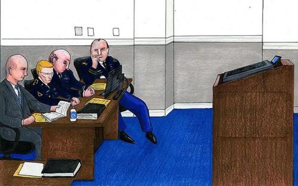 According to live reporting from Kevin Gosztola of FireDogLake, the infamous "Collateral Murder" video depicting a 2007 Apache helicopter attack on a group of unarmed civilians in Baghdad--which Manning leaked to WikiLeaks--was played during the hearing today, despite objections from the prosecution that the video was "not relevant."