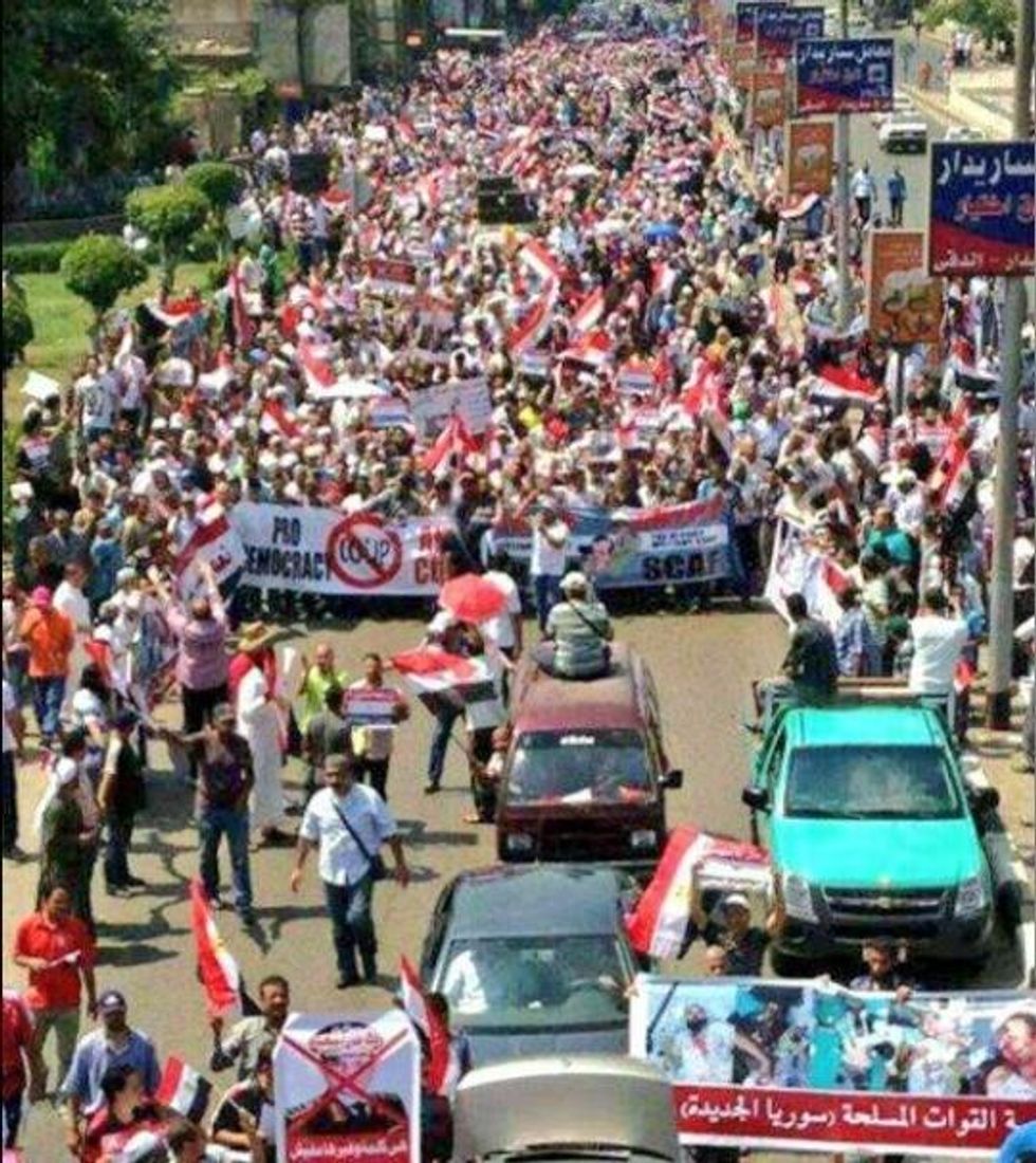 Largely centered around Cairo's Rabaa al-Adawiya mosque, the center of an ongoing pro-Morsi encampment, the day of protests--dubbed "Breaking the Coup"--has spread to small demonstrations elsewhere in Cairo and in several towns across Egypt.