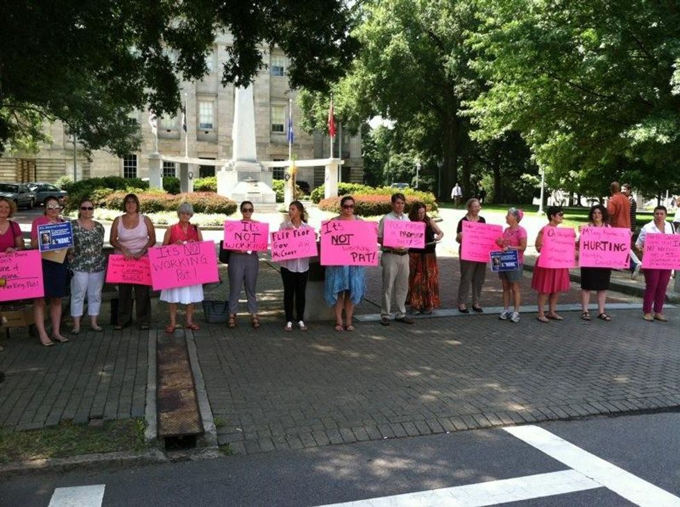 Yet, these cuts have been met with passionate nation-wide protest and mobilization, which has not spared North Carolina. Reproductive justice advocates have rallied weekly with the Moral Monday protests and staged protests and vigils at the capitol. On Monday, a petition with 35,000 signatures was delivered to McCrory demanding he veto the anti-abortion legislation.