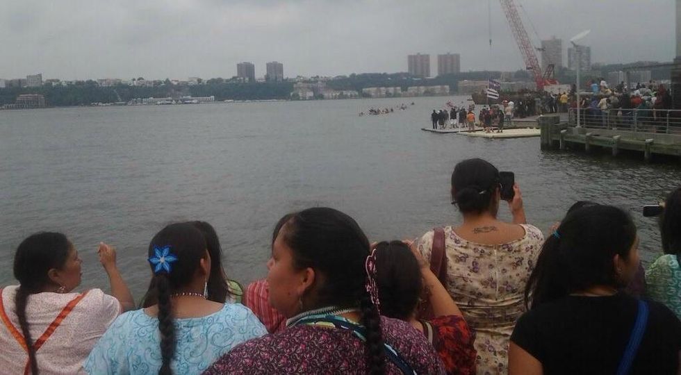 The group of paddlers, which has included more than 500 people at various stages, are both members and friends of the Onondaga Nation and other tribes and have been traveling across upstate New York in recent weeks as part of the The Two Row Wampum Renewal Campaign.