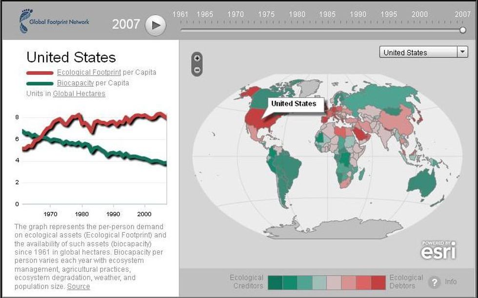 Global Footprints calculates the day of overdraft based on analysis of consumption and production patterns of each country. "Every scientific model used to account for human demand and nature's supply shows a consistent trend: We are well over budget, and that debt is compounding," reads an organizational statement. "It is an ecological debt, and the interest we are paying on that mounting debt--food shortages, soil erosion, and the build-up of CO2 in our atmosphere--comes with devastating human and monetary costs."