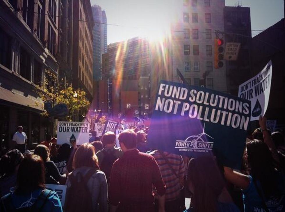 Culminating the four-day Power Shift 2013 summit of the youth-driven climate movement, the march was lead by residents of Dimock, Pennsylvania and other 'fracked' communities, whose water has proven to be contaminated by the gas drilling process of hydraulic fracturing, or fracking.