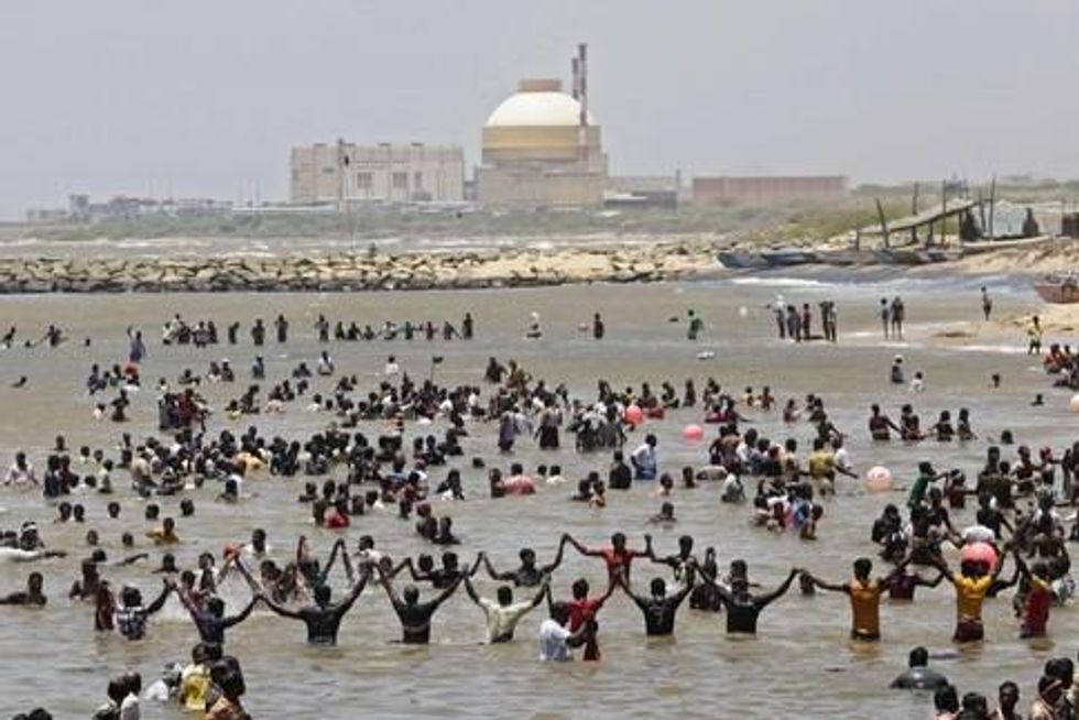 To mark the second anniversary of the Fukushima meltdown in March 2013, 600 boats filled with 4,000 workers in the fishing industry waved black flags in the sea behind the Kudankulam plant.