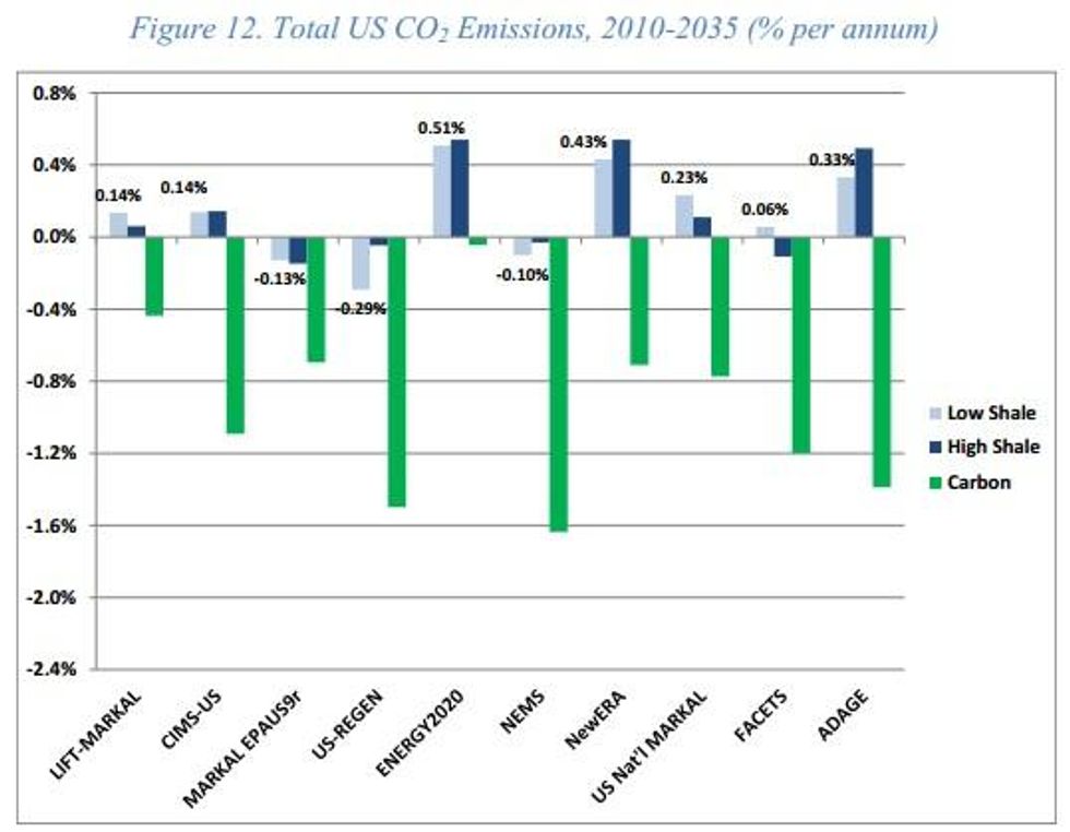 "Most claims that shale gas will significantly reduce U.S. carbon emissions in the future are based on little more than hand-waving and wishful thinking," writes Joseph Romm at The Energy Collective. "That's because those claims assume natural gas is replacing coal only, rather than replacing some combination of coal, renewables, nuclear power, and energy efficiency -- which is obviously what will happen in the real world."