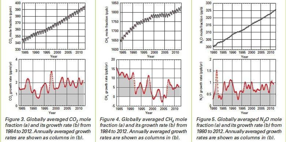 These observations, according to WMO Secretary-General Michel Jarraud, "highlight yet again how heat-trapping gases from human activities have upset the natural balance of our atmosphere and are a major contribution to climate change."