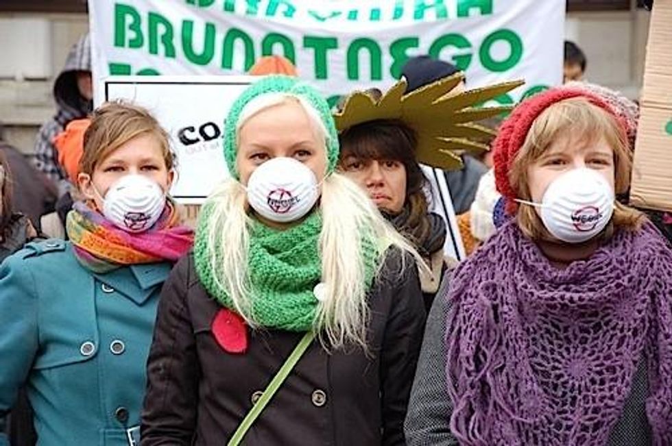 Corporate sponsors of the climate talks include coal, steel, and oil companies, as well as car manufacturers, Democracy Now! reports from Warsaw Monday. Major backers include General Motors, French energy conglomerate Alstom and European mega-polluter ArcelorMittal, Jonas Bruun and Robbie Watt report for the Institute for Policy Studies. "An entire floor in the stadium has been dedicated to private companies peddling 'solutions' to the climate crisis in the form of false-hope technologies such as pumping pollution underground and burning trash," Bruun and Watt point out.