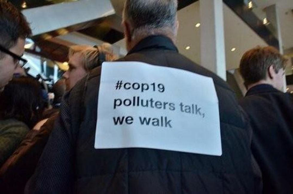 In a joint statement issued Thursday, the environmental groups and allies charged that COP19 "is on track to deliver virtually nothing" and "has put the interests of dirty energy industries over that of global citizens." They continue: