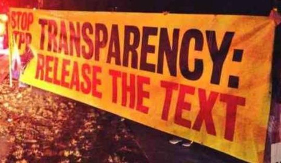 With the Obama administration pushing for 'fast-track' authorization in Congress--meaning that lawmakers would be forced to give an up-or-down vote on the presented trade agreement without the ability to add, subtract, or alter sections of the text--the notion of transparency and the anti-democratic nature of the negotiations have taken center stage.