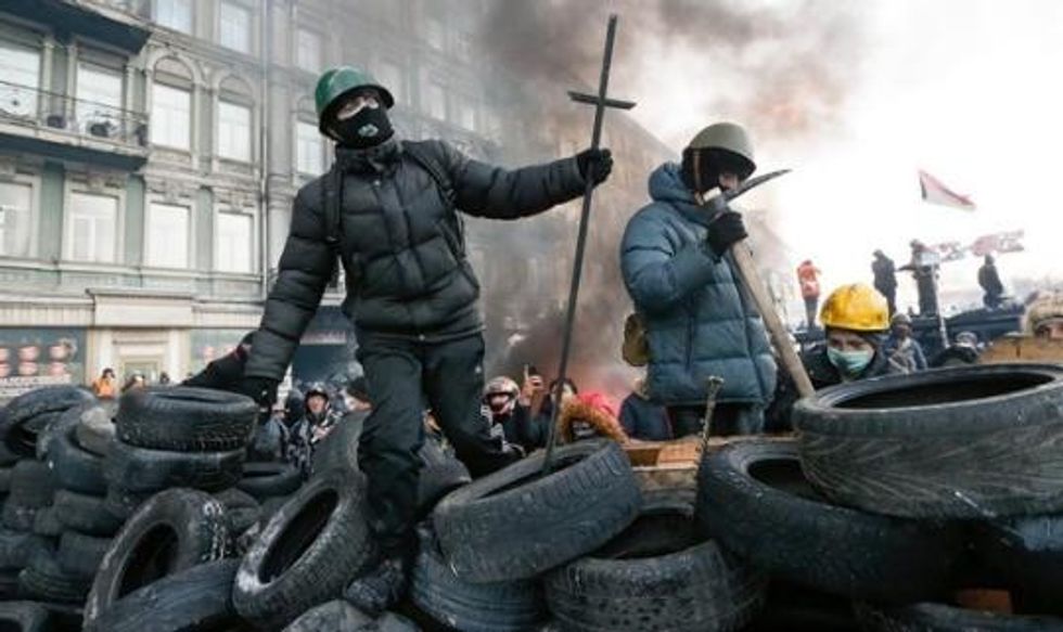 Demonstrators seized a number of government buildings over the weekend, as protests have grown increasingly violent following the deaths earlier this week of at least two protesters after Kiev police advanced on the crowd with smoke, tear gas, rubber bullets, stun grenades and water cannons.