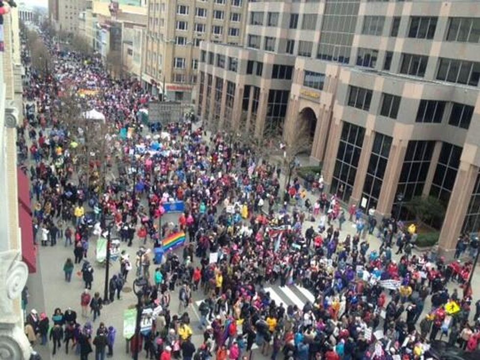 Tens of thousands of people are marching through downtown Raleigh, North Carolina Saturday in what organizers describe as a "Mass Moral March" to push back against rightwing legislation.